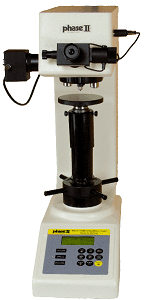 The Phase II macro-vickers hardness testers are versatile and user-friendly systems. Designed for the accurate hardness testing of small precision parts, thin materials, case hardened layers and all sorts of steel components. The Phase II 900-398 is our macro-vickers hardness tester, covering the load range from 1kg to 50kg, with digital technology. Conforming to ASTM E-384/92 vickers hardness testers standards, the 900-398 digital vickers hardness tester will offer unmatched repeatability. A perfect rugged performer suited for any environment, the Phase II vickers hardness testers are offered with a 5 year warranty and free lifetime technical support. The 900-398 Vickers Hardness Tester which includes precision video and measurement software package is engineered to produce a clear indentation and a more precise measurement. By means of a load cell, closed circuit system for control, the CPU controls testing force to load/dwell/unload, allowing for the highest degree of accuracy. The large LCD shows the measuring methods, the testing force, the indentation length, hardness value, the dwell time of the testing force as well as the number of the measurement on its screen. All information such as diagonal lines length of indentation, hardness values, data statistics and hardness conversions can be displayed on the LCD as well as your laptop or PC.