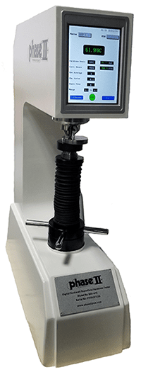 This digital Rockwell hardness tester with fully automated load/unload procedures affords highly sensitive and accurate readings. Micro computer controlled Touch Screen with USB output to flash drive. The 900-440 digital Rockwell hardness tester offers programmable scale conversions, dwell times, statistical capabilities and test counter. This hardness tester comprises the very best in “state of the art” design along with dynamic precision only found at Phase II. The 900-440 Rockwell scale hardness tester is easy to operate, yet engineered to obtain highly sensitive and accurate readings. Conforming to ASTM E-18 Rockwell Hardness standards, the 900-440 rockwell hardness tester will offer unmatched repeatability in all standard & superficial Rockwell Hardness scales. A perfect, rugged performer suited for any environment including heat treat facilities, tool rooms, workshops, laboratories and inspection labs. Lifetime technical support is included on all Phase II Hardness Testers. So test away with confidence and a level of accuracy you will only find at Phase II. Capable of hardness testing in all of the regular Rockwell and Superficial Rockwell hardness scales.