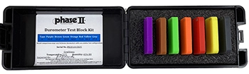 7pc Shore A Durometer Test Block Kit Model No. PHT950-25 - Consists of 7 color coded test blocks that range from Ha 30’s to Ha 90’s.